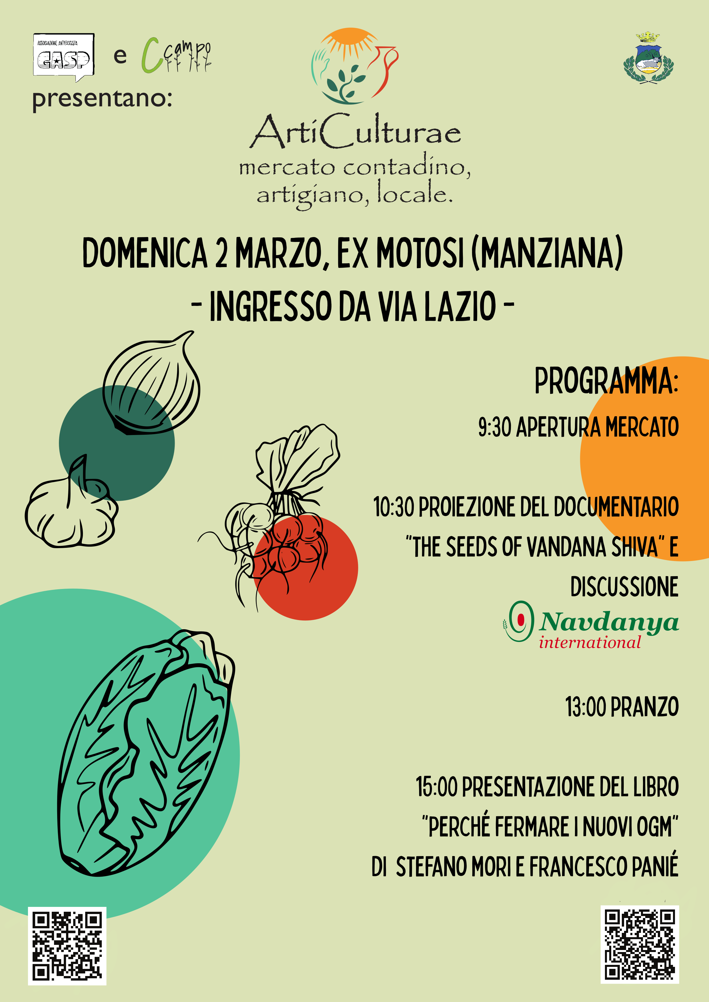 Mercato contadino/Proiezione del documentario “The Seeds of Vandana Shiva”/Presentazione del libro “Perché fermare i nuovi OGM?”