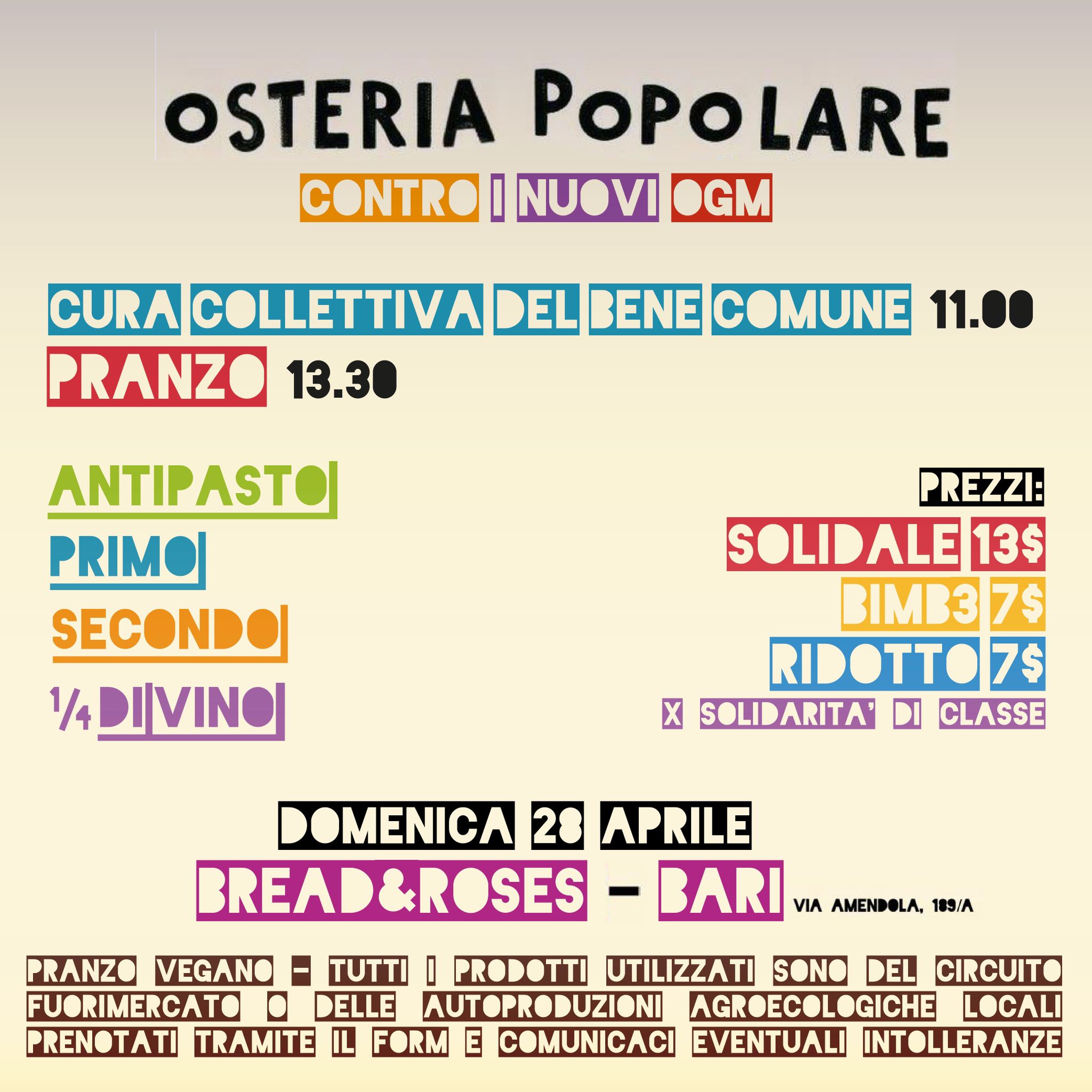 Osteria Popolare contro i nuovi OGM: Cura Collettiva del Bene Comune e Pranzo Solidale