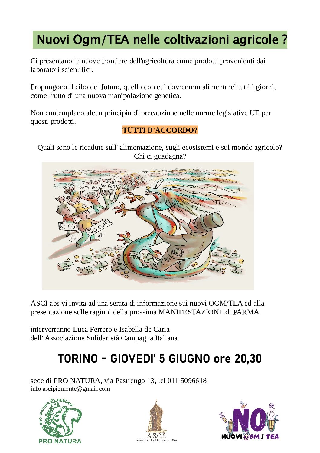 17 al 23 febbraio, settimana di mobilitazione nazionale decentrata contro tutti gli OGM/TEA.